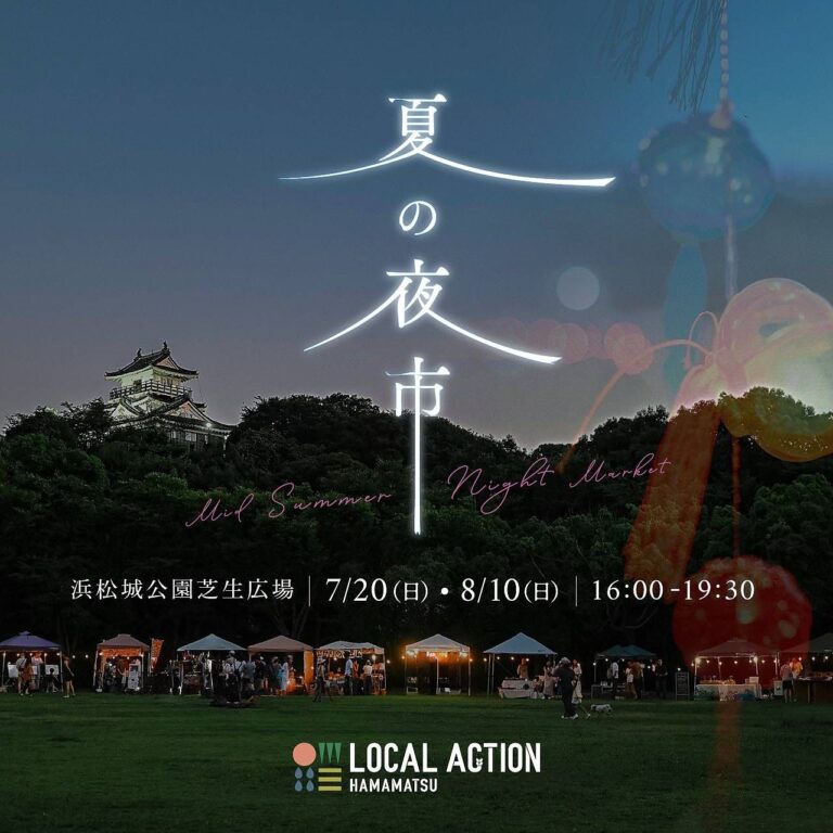 レジャーシートを持って、マイタンブラーなども用意して、夕涼みしに夜市へお出かけください。浜松城公園芝生広場で会いましょう!